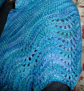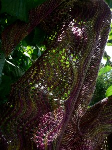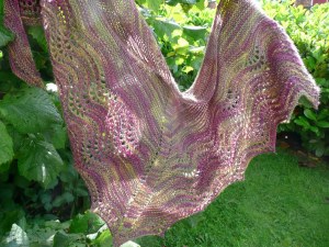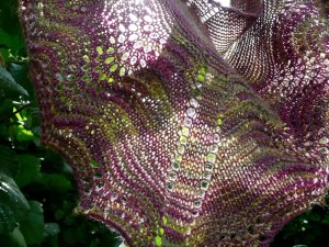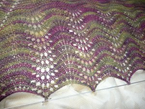 This morning I was near the end of a shawl. I haven’t counted the stitches but it takes a jolly good while to knit a row. There is a saving grace in this pattern that half way it is obvious whether you are correct in your counting, and on this row I wasn’t correct. At once there was a slight feeling of dread. You see I had been gaily knitting my shawl from nine until one in the morning. I’d occupied my knitting time with a soppy film called Hachi, which had the bonus of Richard Gere, a gorgeous dog and was based on a true story and there were many tears from me, (I’m a real gusher when watching a soppy film) and then I happened to click on another film, again based on a true story Miss Marie Lloyd – Queen of the Music Hall. So I was concerned that I had dropped a stitch whilst gaily joining in the singing of ‘My old man said follow the van.’