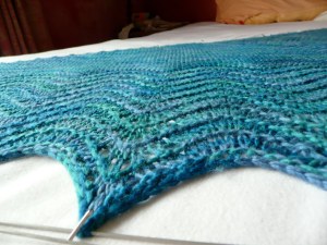 And as knitters we know that we should stop knitting before we get tired. But the pattern was easy, the company was great – even if it was only the T.V. and I was enjoying myself. And I had stopped just before the next tricky row. So I was feeling pleased with myself, lots of quality knitting time that I had enjoyed immensely.
