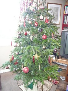 The tree itself. Which son no.2 decorated, he moans but seems to enjoy it. Although I do sometimes have to insist that even though there are decorations that are a little bit scruffy, that are old and might not sparkle as they did and might not appeal to him, they mean a lot to me and do need to be hung on the tree. I think he did a lovely job. I’ll come back to the tree in a moment.