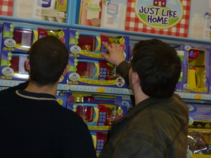 We then tried to book four seats at our local flea pit to watch The Kings Speech to find they were fully booked, which then sent out all of our timings and where we were going to eat for the evening. So it was decided that we would eat first and Indian cuisine was voted for, so we quickly rang an Indian restaurant that is so busy if you don’t book you can’t get in. Fortunately we were in time and secured a table. The food was delicious as usual and set everyone into a very good mood. We then had an hour and a half before the film so it was decided that we would take a trip out to ToyRus. I haven’t been there for years, it was great fun.