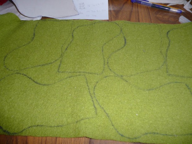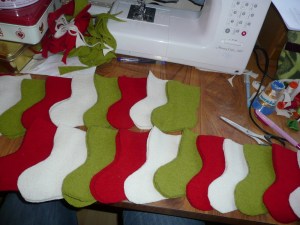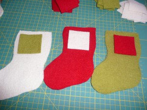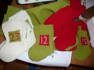 I seem to have been surrounded myself with all things Christmassy this weekend. Last weekend I wandered over to Decorative Cloth and found to my delight that they had some boiled woolen cloth in. I quickly came up with an idea and bought enough fabric to delight son no.2 with a home made stocking advent calendar. I was designing whilst I was choosing, it was really good fun.