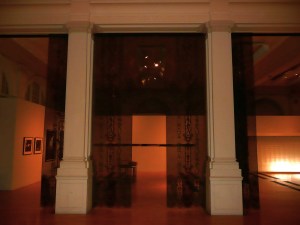 And then the boys came back, there was this one exhibition where you entered a very small room which then went black as ink and waited for the lights to shine upon the lace with different colours and angles. I thought son no.2 might like this and he did, but only because I was trying to take a photograph of him in the pitch black and he kept moving. So the game at which he giggled was to catch him in camera shot whilst he moved as silently as a ninja. It was great fun, I did get this photograph of him.