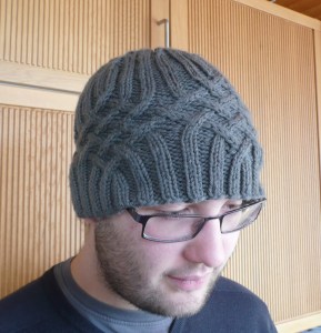 When I knitted the first hat from this pattern for son no.1 he was tickled pink not least because the snow on the ground was at least two inches thick and he needed something warm whilst he was tinkering with cars. He proudly wore it to work and his boss exclaimed that it was indeed a very fine hat and was very impressed that his mum had knit a hat like that. I felt quite warm and perhaps just a little smug.