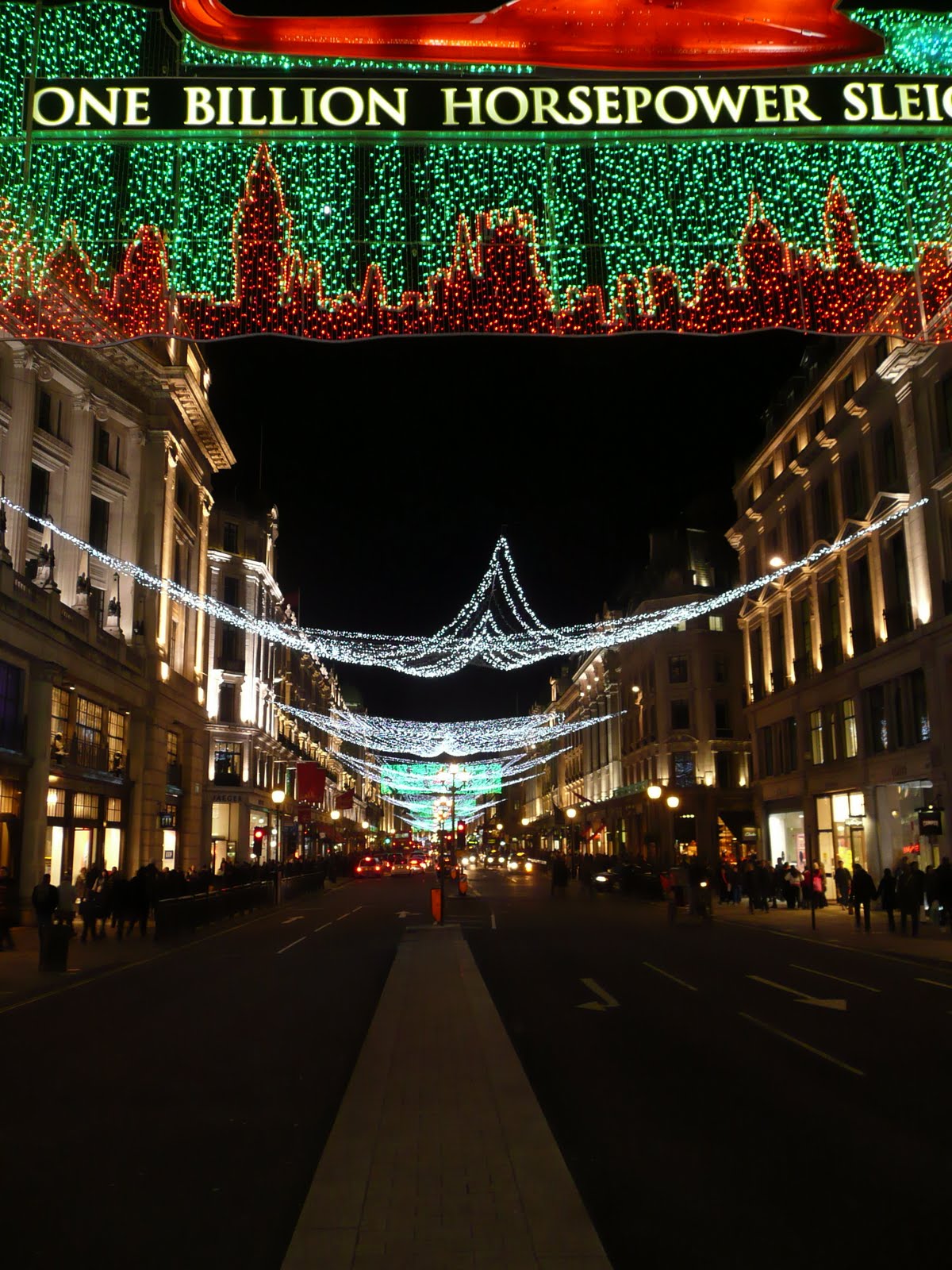 it is dark. Regent street was looking very pretty and was