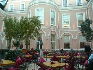 The Wallace Collection’s stunning courtyard is the glamorous location for Oliver Peyton’s cafe and brasserie de luxe. I have to say the service is impeccable although we only stopped for a quick coffee the speed and attention to detail was noticeable. The menu looks very attractive, to be considered, perhaps, on one of our future jaunts.