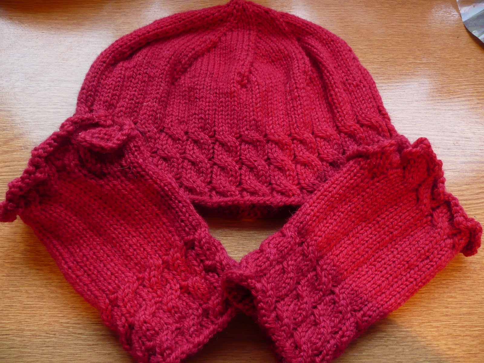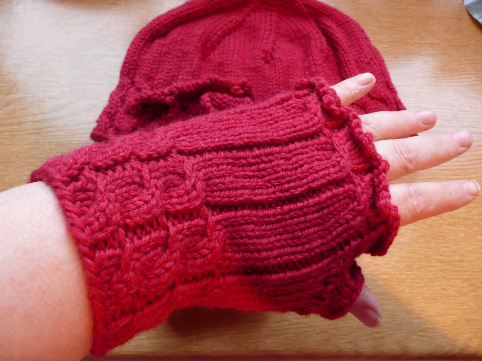 I made a pair of Fetchings (free pattern on Ravelry) and a matching hat for a special lady’s 80th birthday