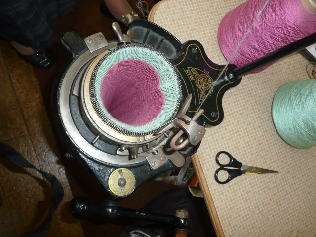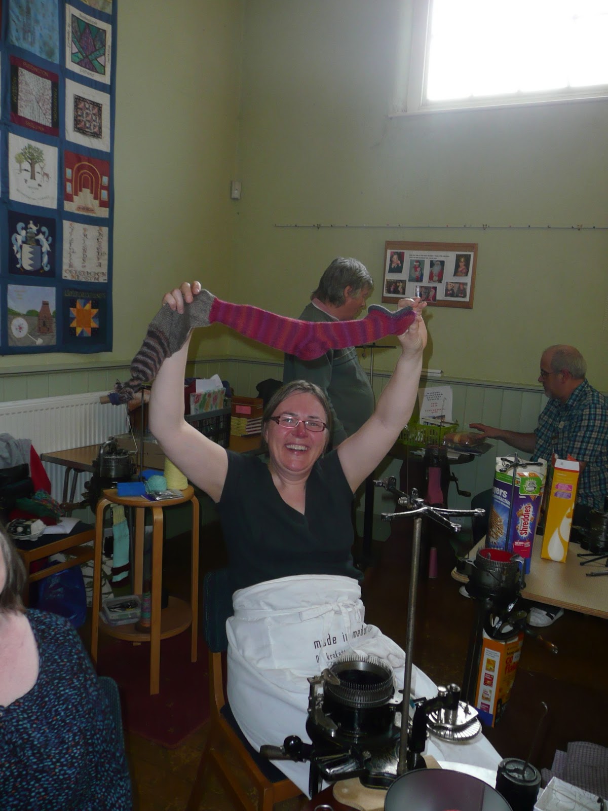 And everyone giggled that I was knitting a sock by hand, and comments were made that I may well finish my sock before anyone had finished theres. There is a very steep learning curve when using one of these machines.