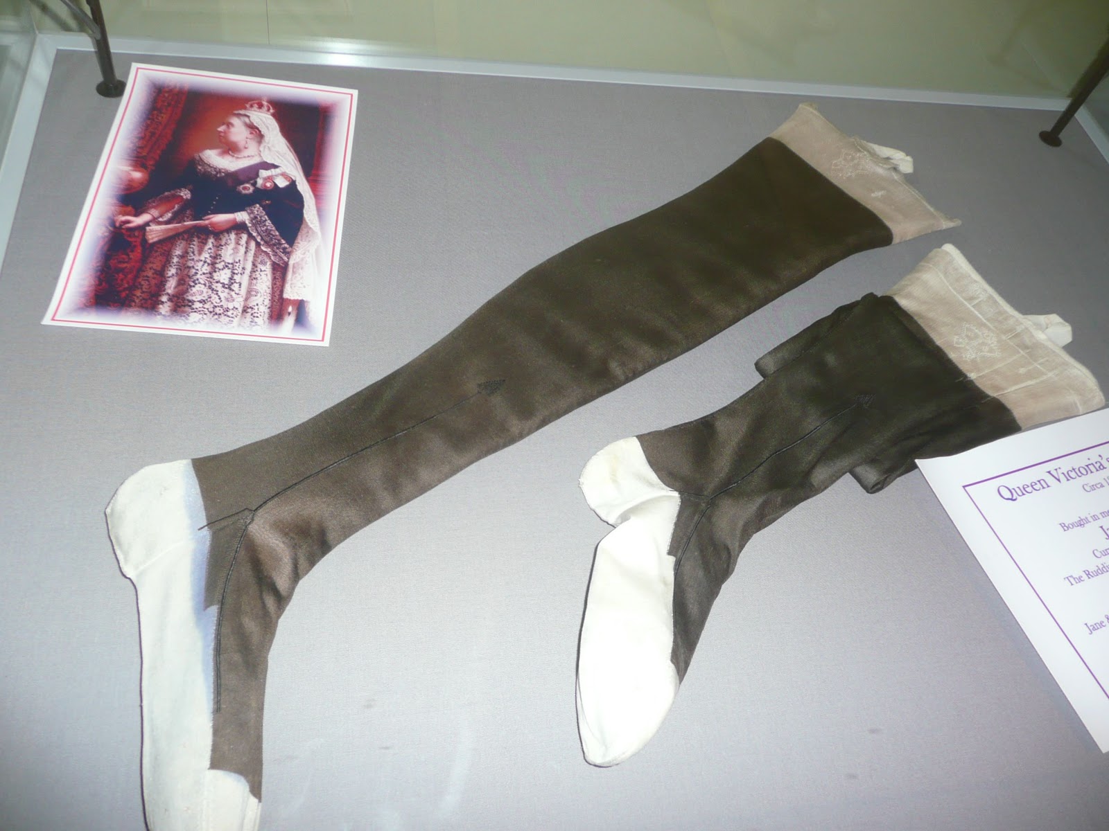 Although the museum was closed the section that exhibits the stockings was just above us on a balcony and here lay Queen Victoria’s stockings, there were signs of mendings on the toe! Only a very small hole and beautiful darned, obviously stockings were an expensive commodity in those days.