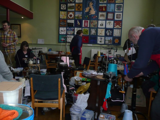 There were 22 sock machines in the room and discussions were had about just how much they had gone up in the last couple of years. The regular price for what one hopes is a decent machine comes in at £650/£850 and one with a selection of different sized cylinders will often go over the thousand. I am glad we bought ours when we did! Most people may think we were surrounded by a pile of junk!