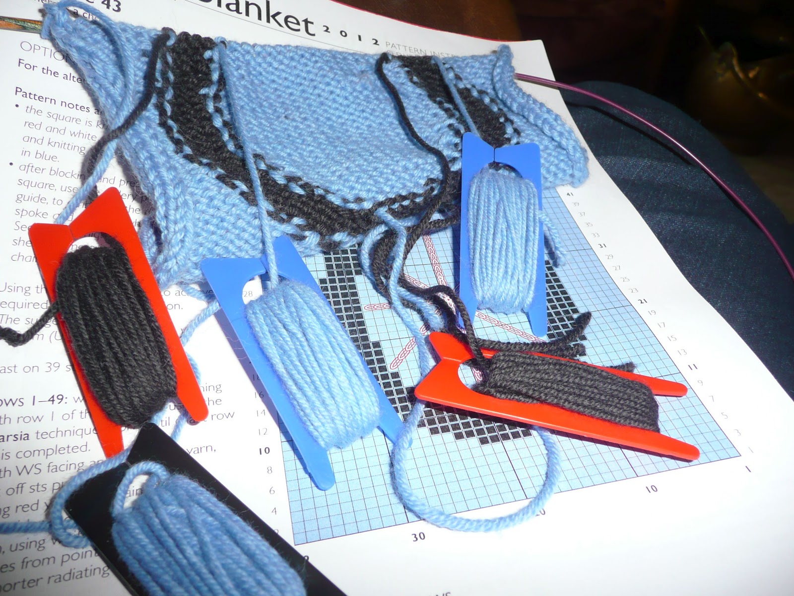 And I at last get to sit down with this… The latest Mystery Blanket by Debbie Abrahams, I have probably knitted this square about five times now. I think I have mastered the twists and turns of Intarsia now, but my biggest fault is enjoying the knitting. So what happens is I am in deeply cheerful mood thinking it will be all right and it then turns out I made a mistake a few rows down and its throwing the whole thing out. And you all know what a perfectionist I am, so I have to tink or frog it back to find my mistake.