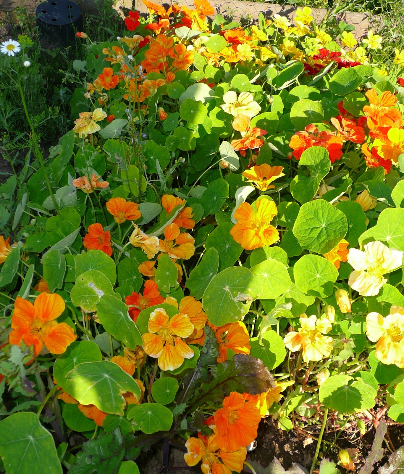Tomorrow I may well be making garlic and rosemary foccacia, garlicky artichoke hearts, iceberg leaves becoming cups filled with a fried up garlicky courgette mixture (must check hubby hasn’t got a meeting on Tuesday!) and something to do with eggs, adding some spicy potato wedges for the hungry boys all gaily sprinkled with nasturtium flowers! They are going to love it. wink