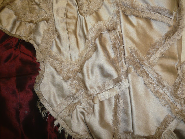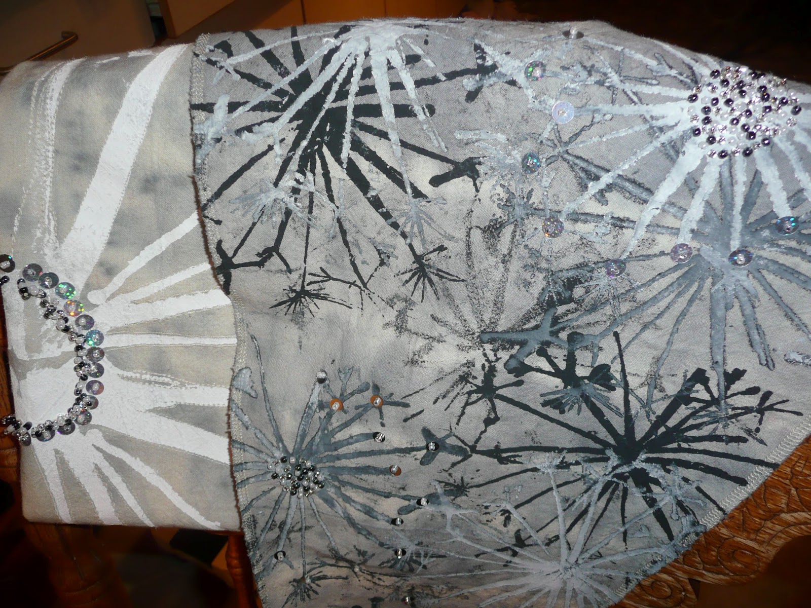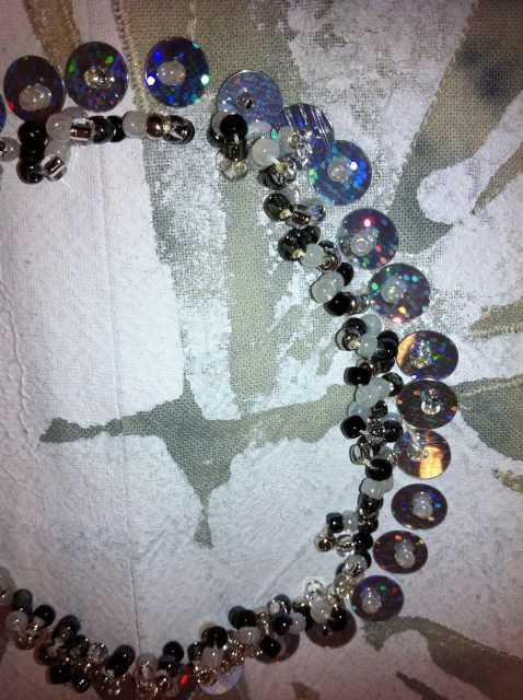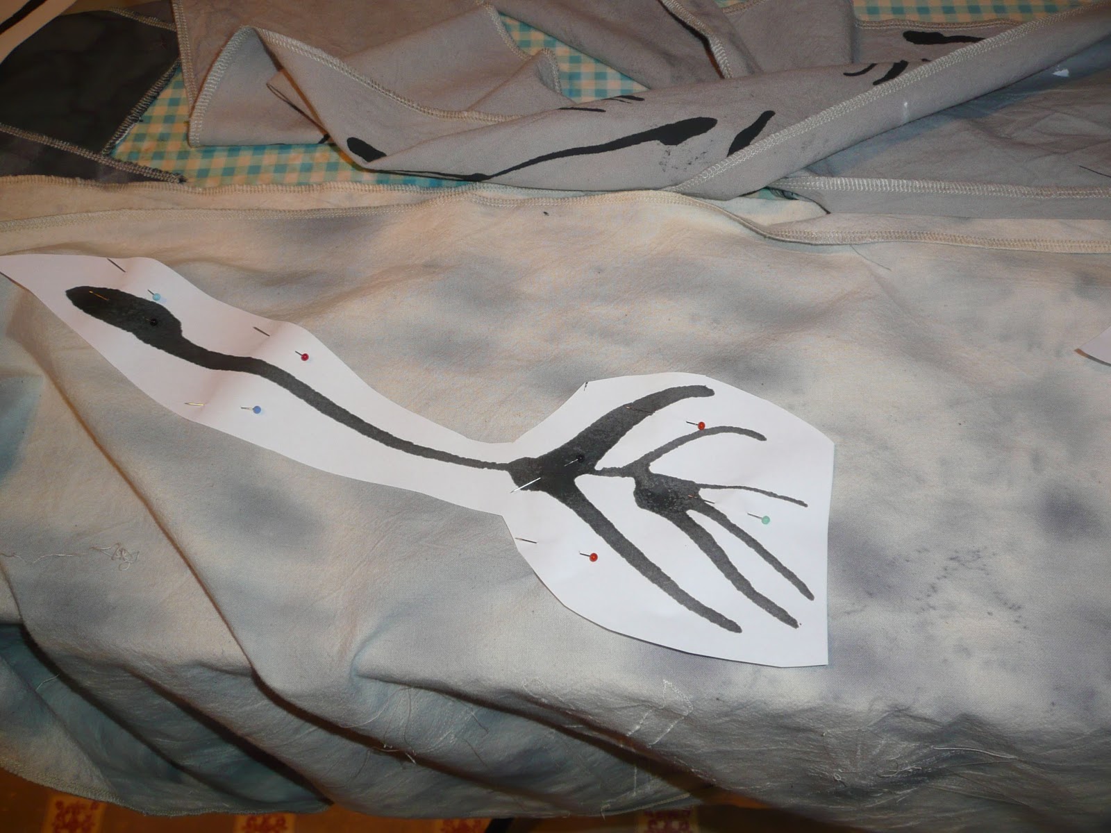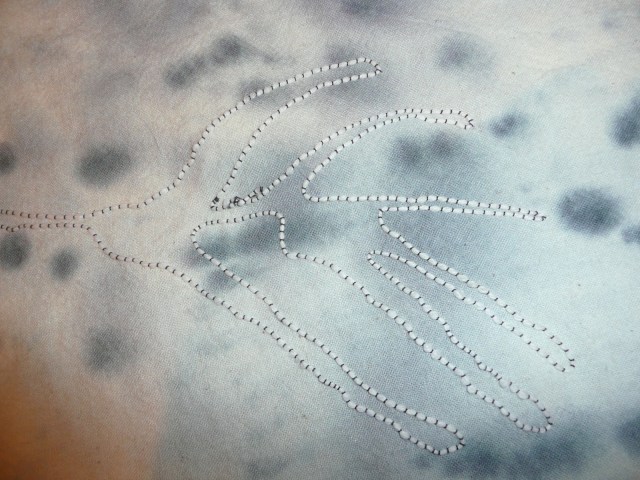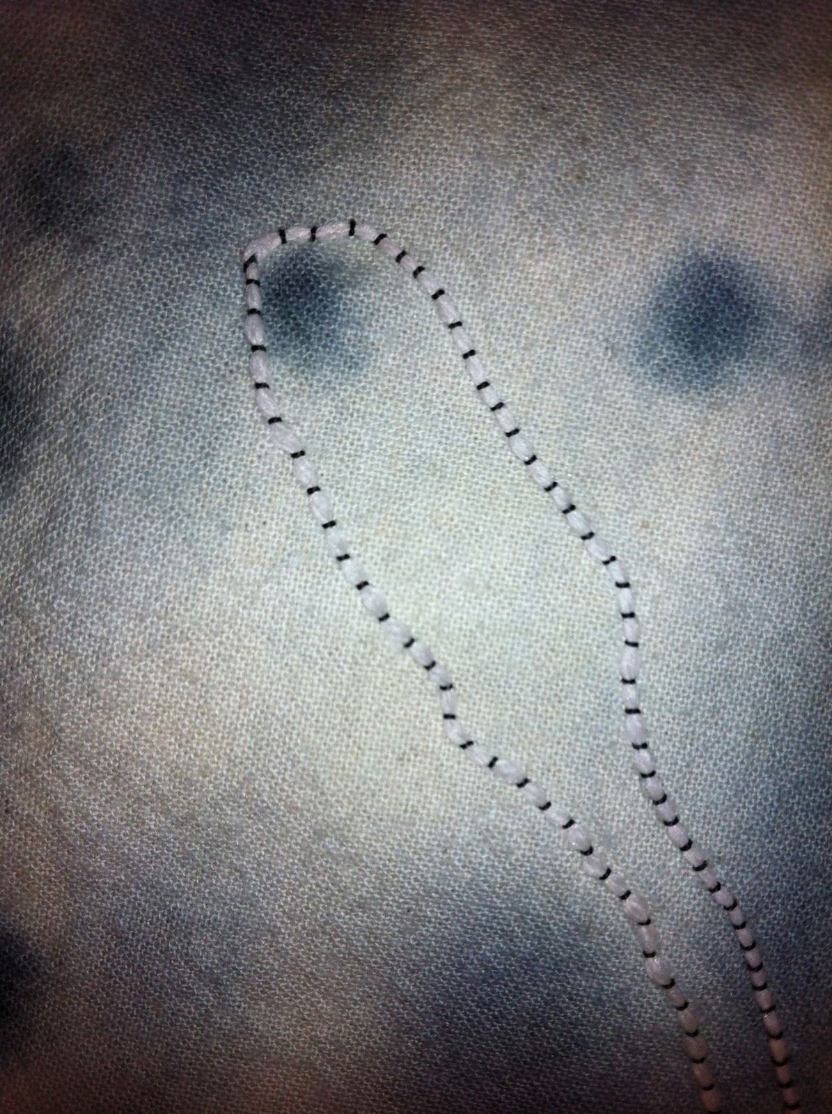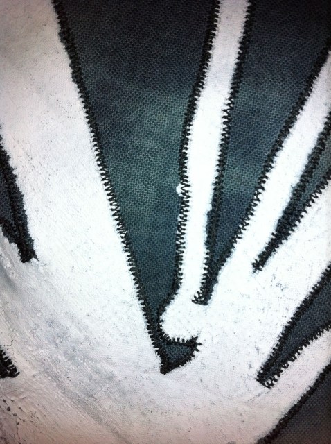Wound my bobbin with cream wool and placed black thread on the machine for the top thread. And then slowly followed the design. Thank goodness for modern sewing machines that will stop with the needle in the down position.