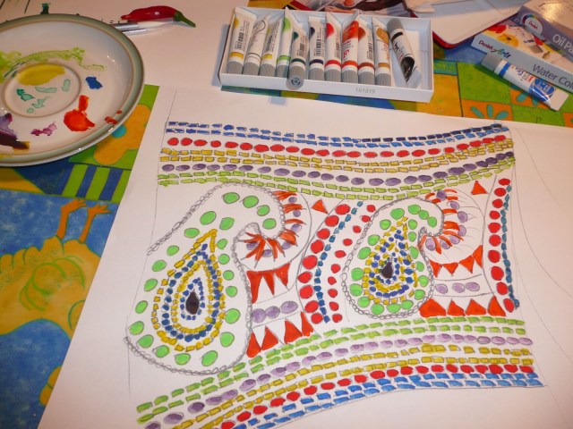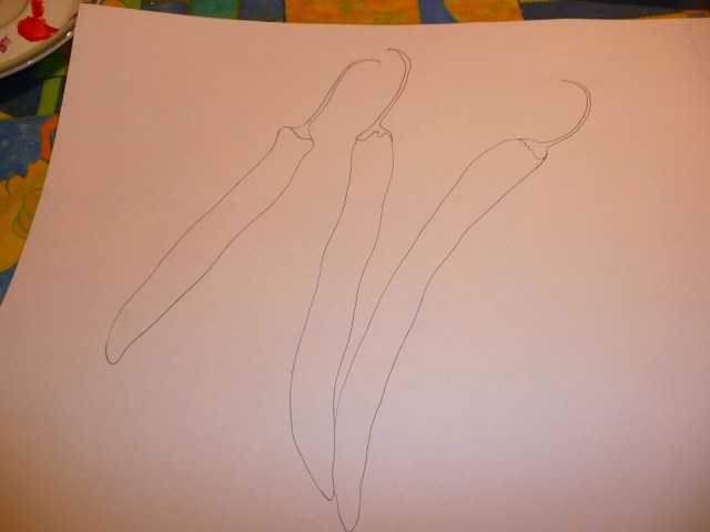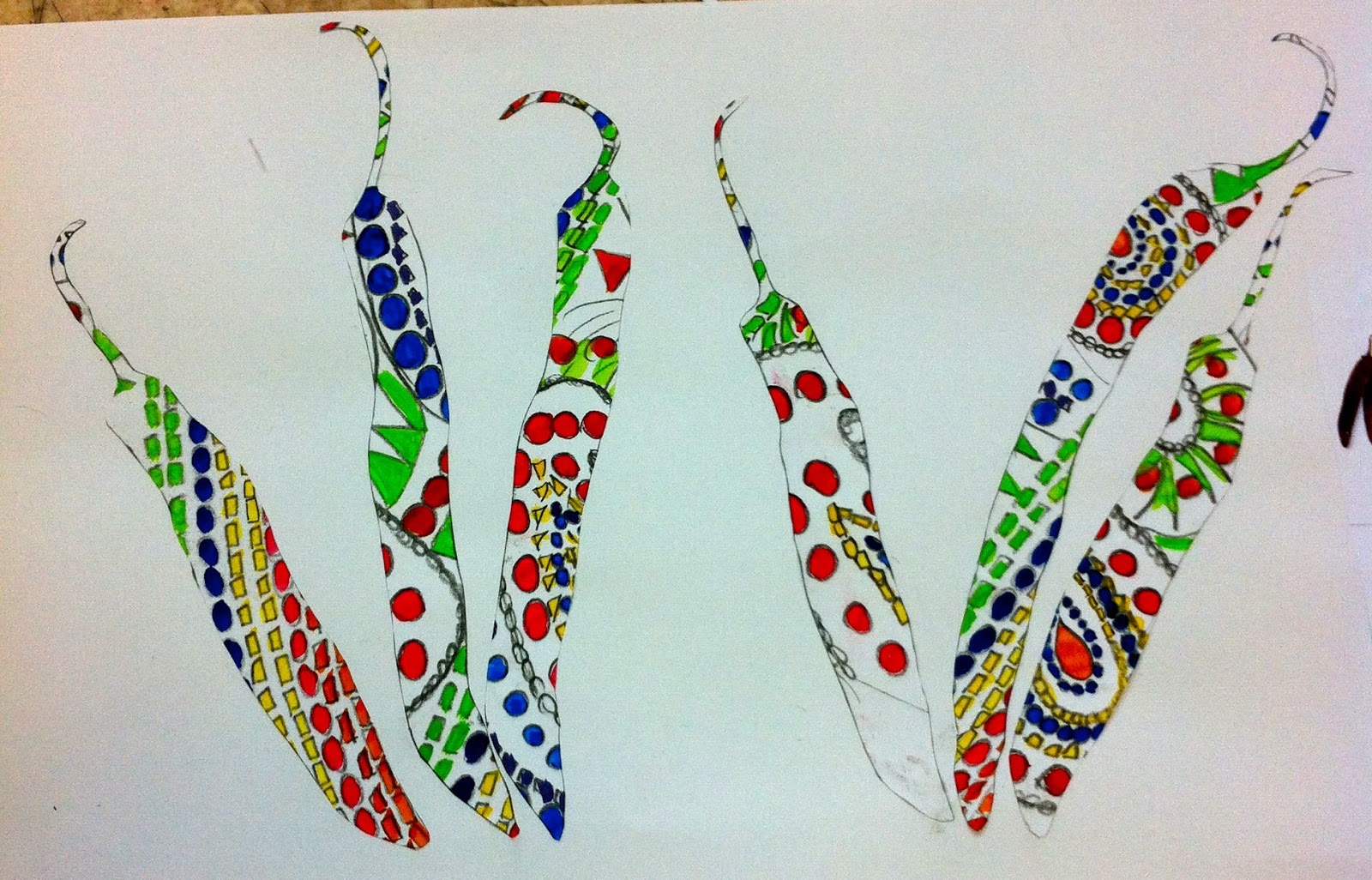 use it to make a collage for my hand drawn chilli’s. Do you like my chilli’s? I really like them, and so do my tutors, for some reason they think I am quite good at drawing, I have a bold technique or something, becoming a fabric designer was mentioned. I don’t really believe it myself, not having drawn so much a stick figure since I was twelve, (or thereabouts) but they seem quite keen.