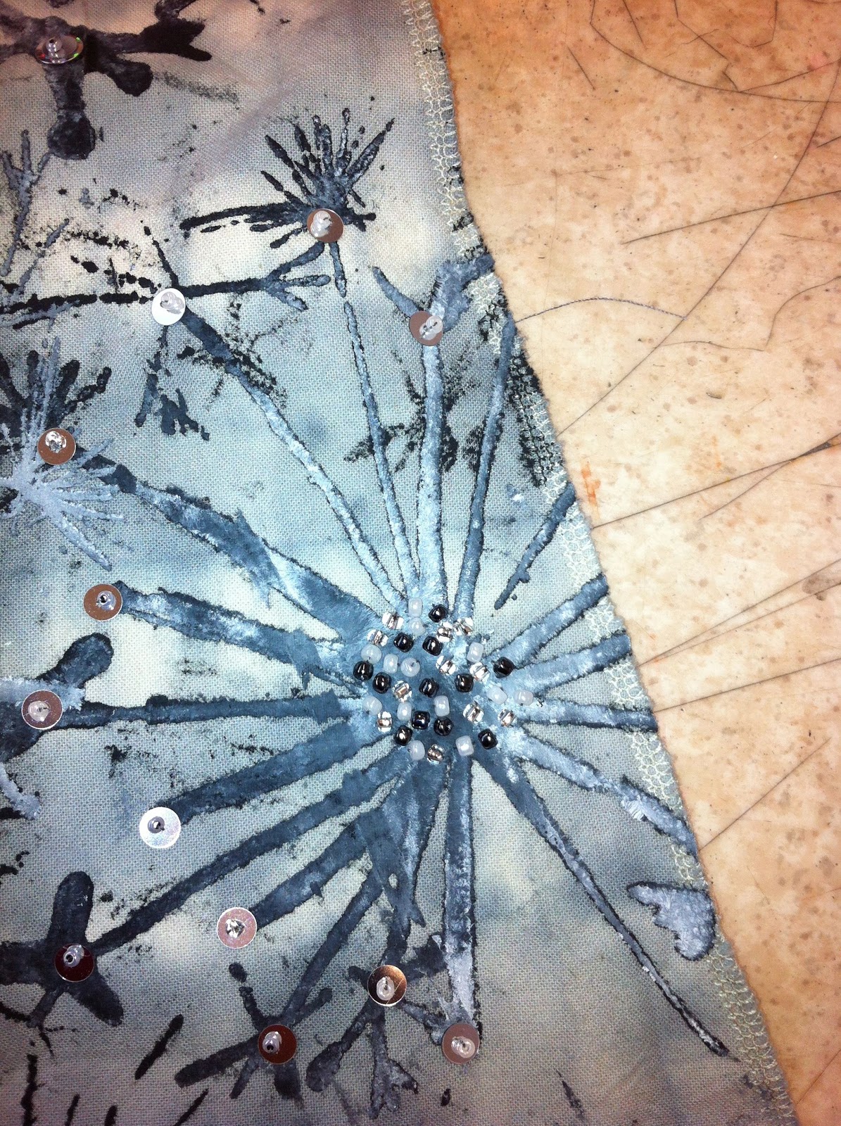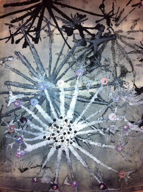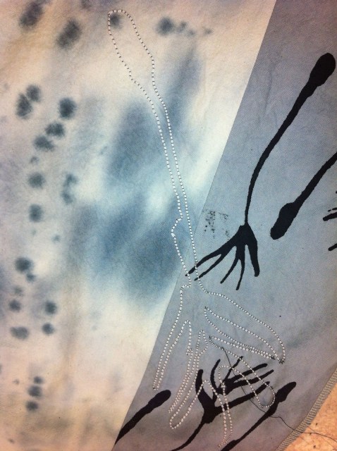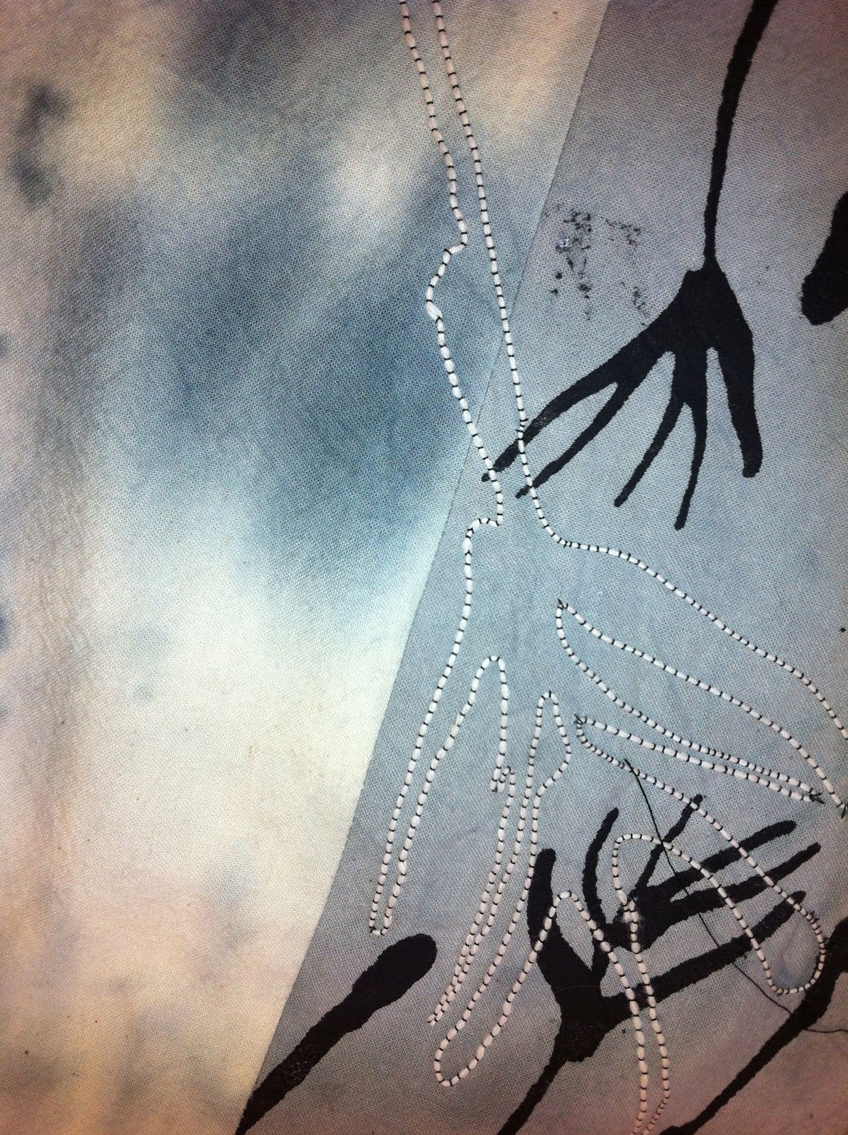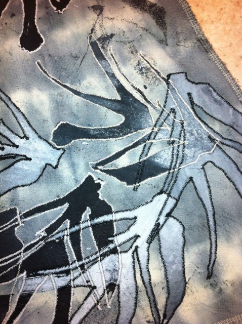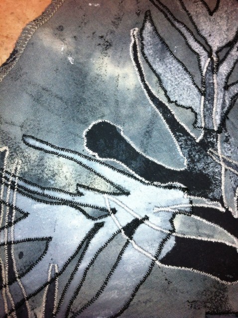 Today I have been mainly working on Thursday and Fridays work, which already takes up two A3 sketch books (which is the main reason you haven’t heard a peep from me for weeks) I tried a new technique to me, sewing with wool in the bobbin. I followed a photocopy of my dandelion seed and