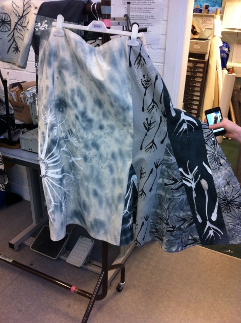 My pattern cutting folder, with one skirt block, two skirt patterns, two toile skirts, one close fitting bodice block, two fitted bodice patterns, two fitted bodice toile. I have one cardboard skirt block made and one cardboard fitted bodice to make tomorrow (I’ve allowed the whole day). It also has in it, instructions, reviews, charts of measurements and other sundry items that are deemed necessary.