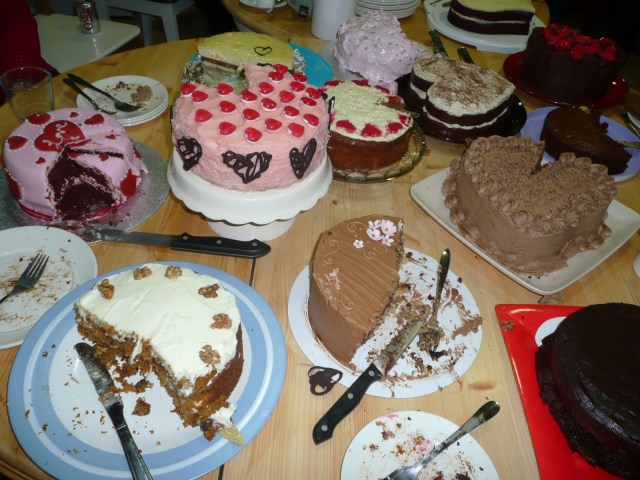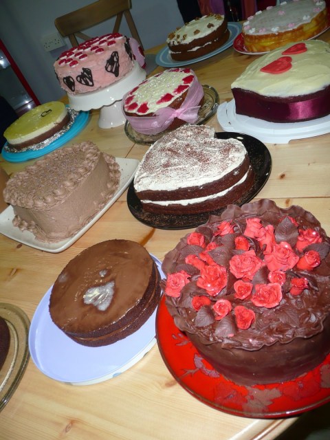 I was asked to come along as snow meant that some people couldn’t make it. I found that email at 2 p.m. for the event that night, Eeeek !!! I have lemons, (I am really into my lemons at the moment) eggs and butter, so I think a lemon sponge with home made lemon curd will be nice. I reckoned that it would be light relief as the theme was Valentines, and as I surmised there was lots of chocolate cake.