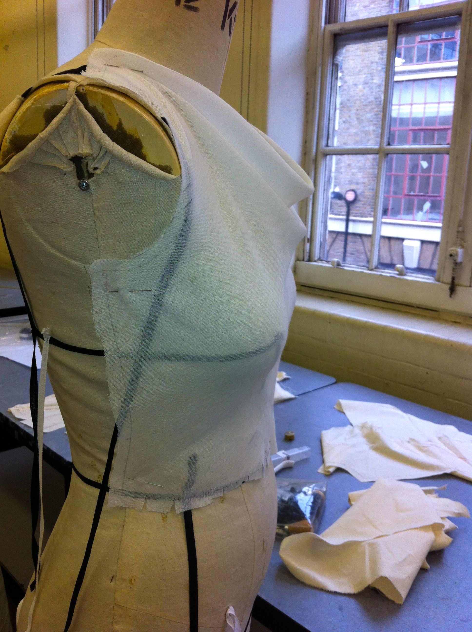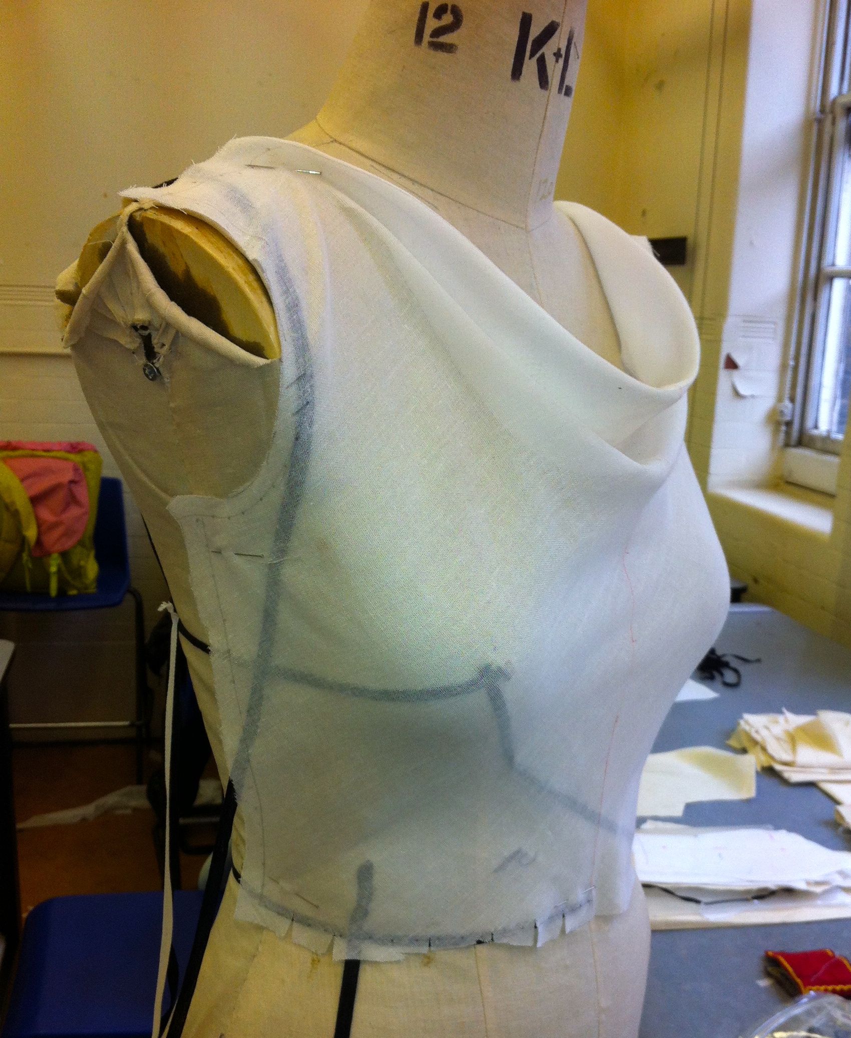 And every ball gown needs a bodice. So we start the long process of learning how to drape a bodice onto the stand.