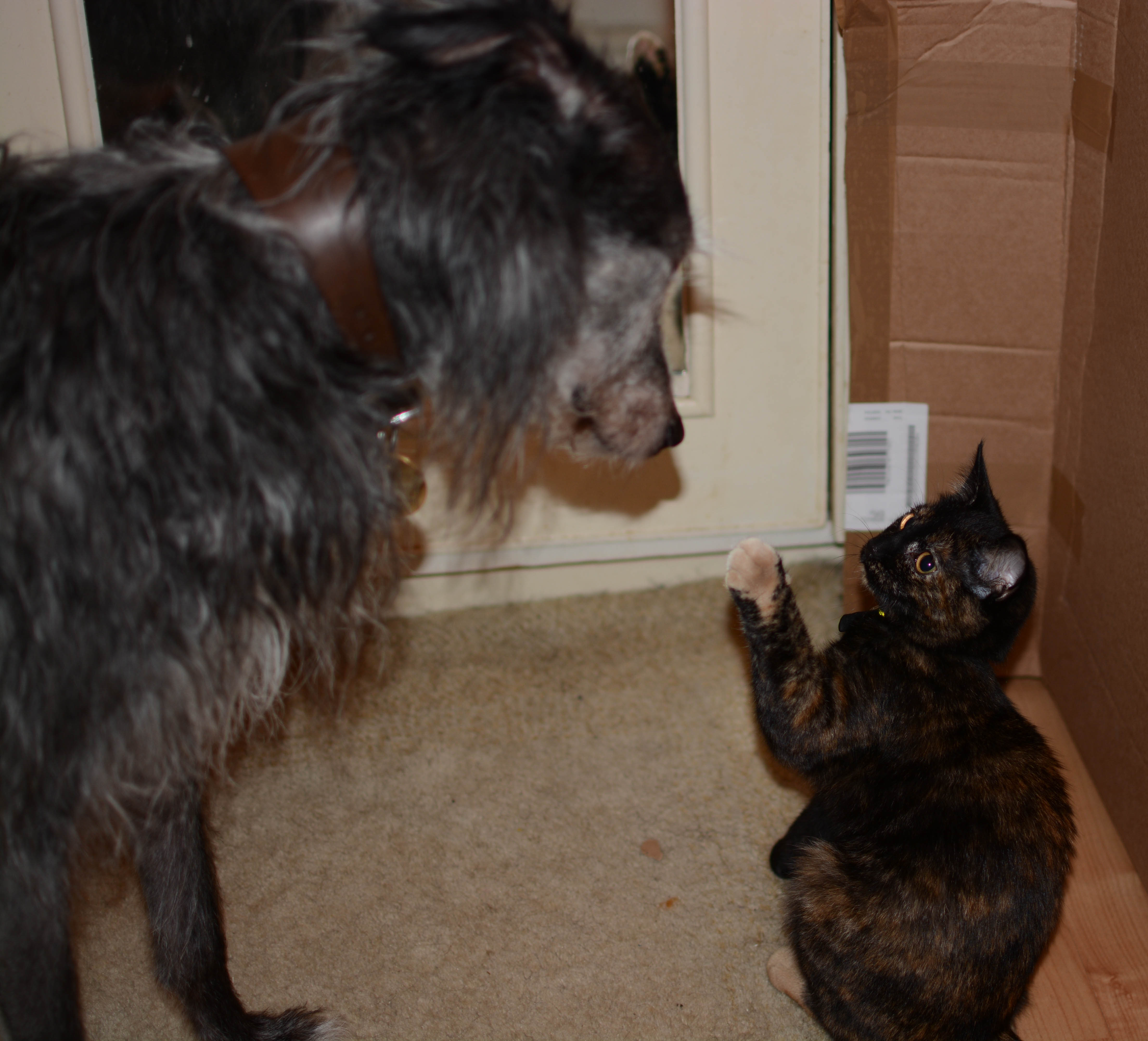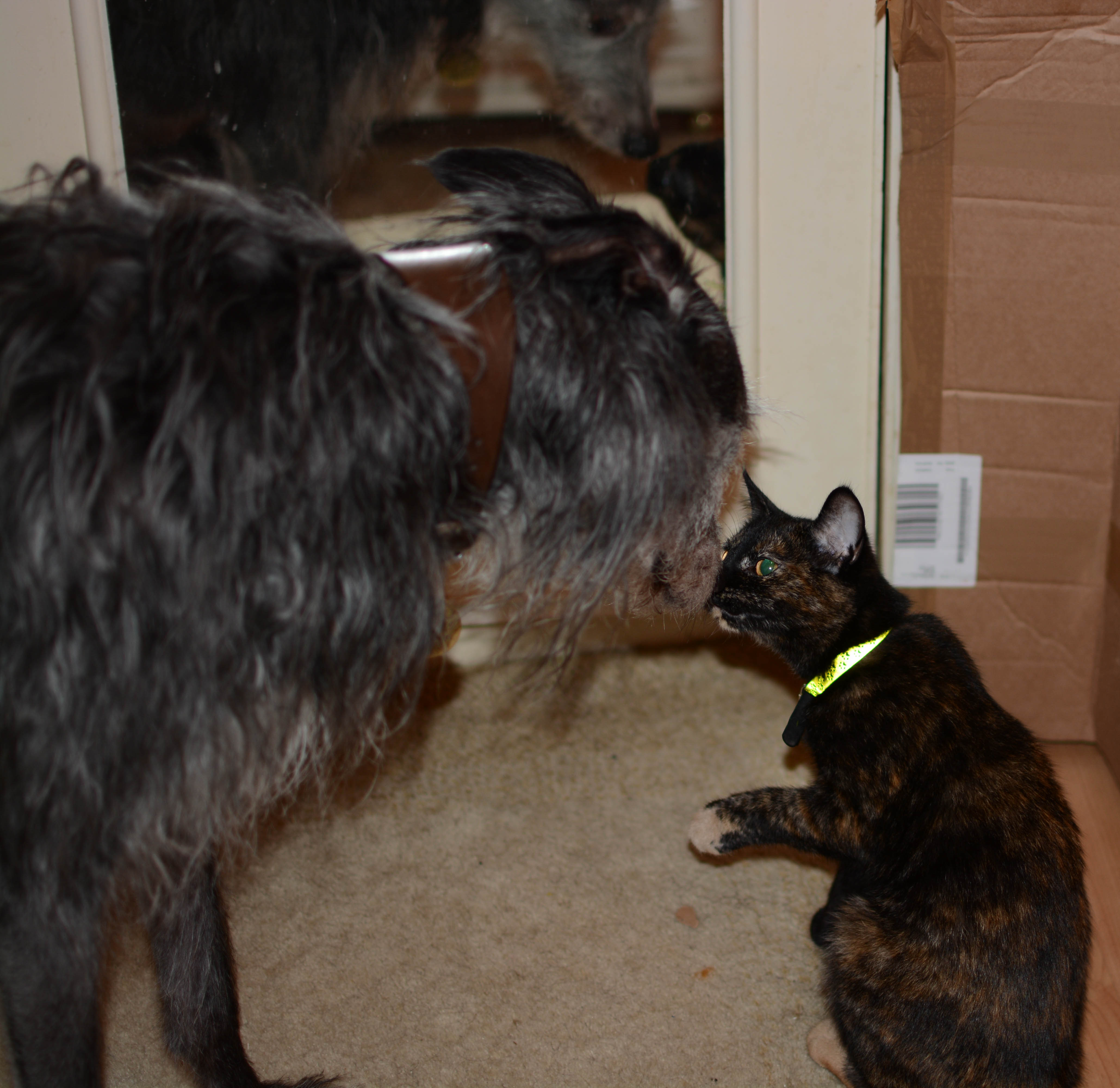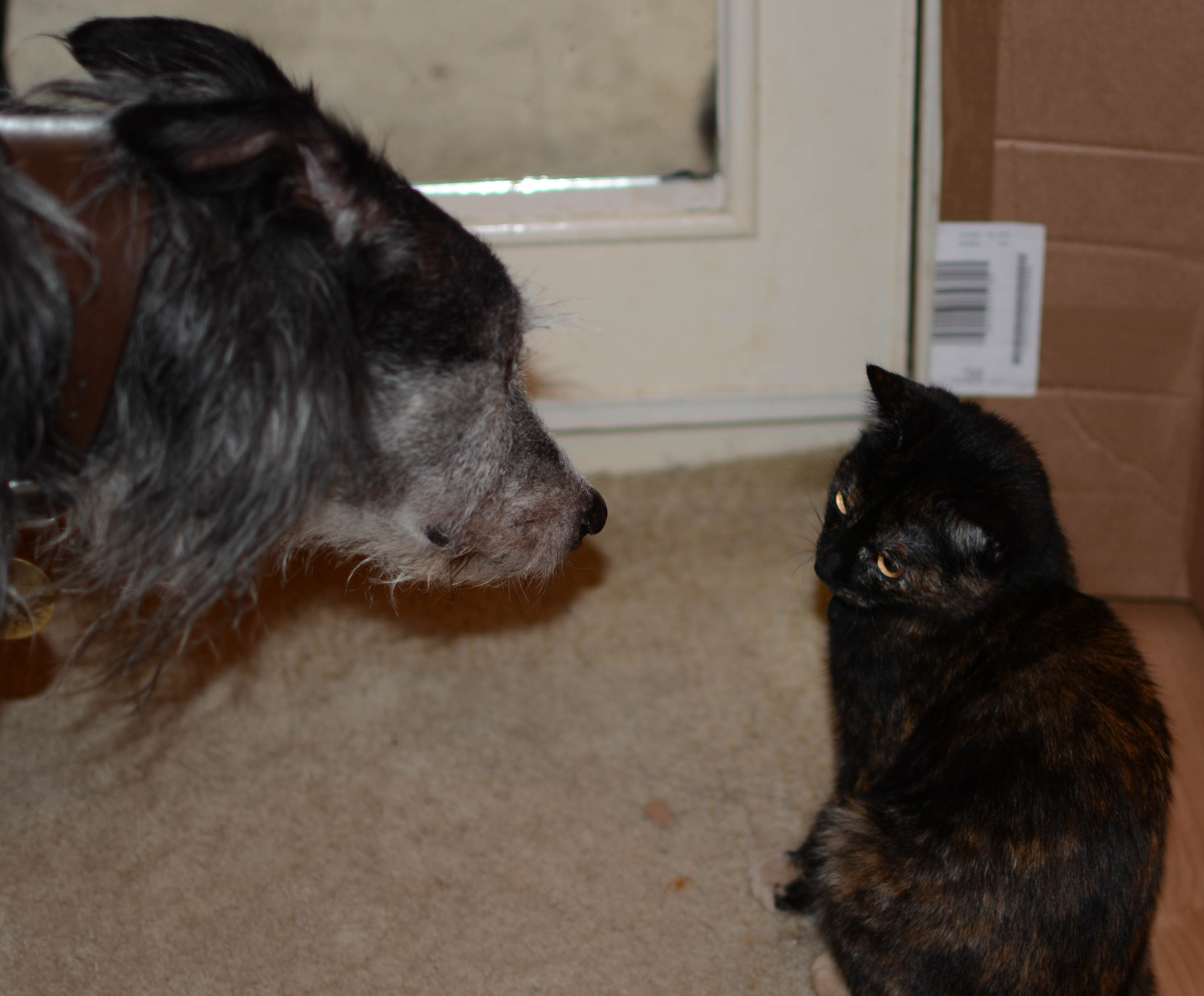 It went well. Pip is very cat steady and Toile had come from a family with a pet dog, so I knew we stood a good chance if both of them could just hold their nerve.