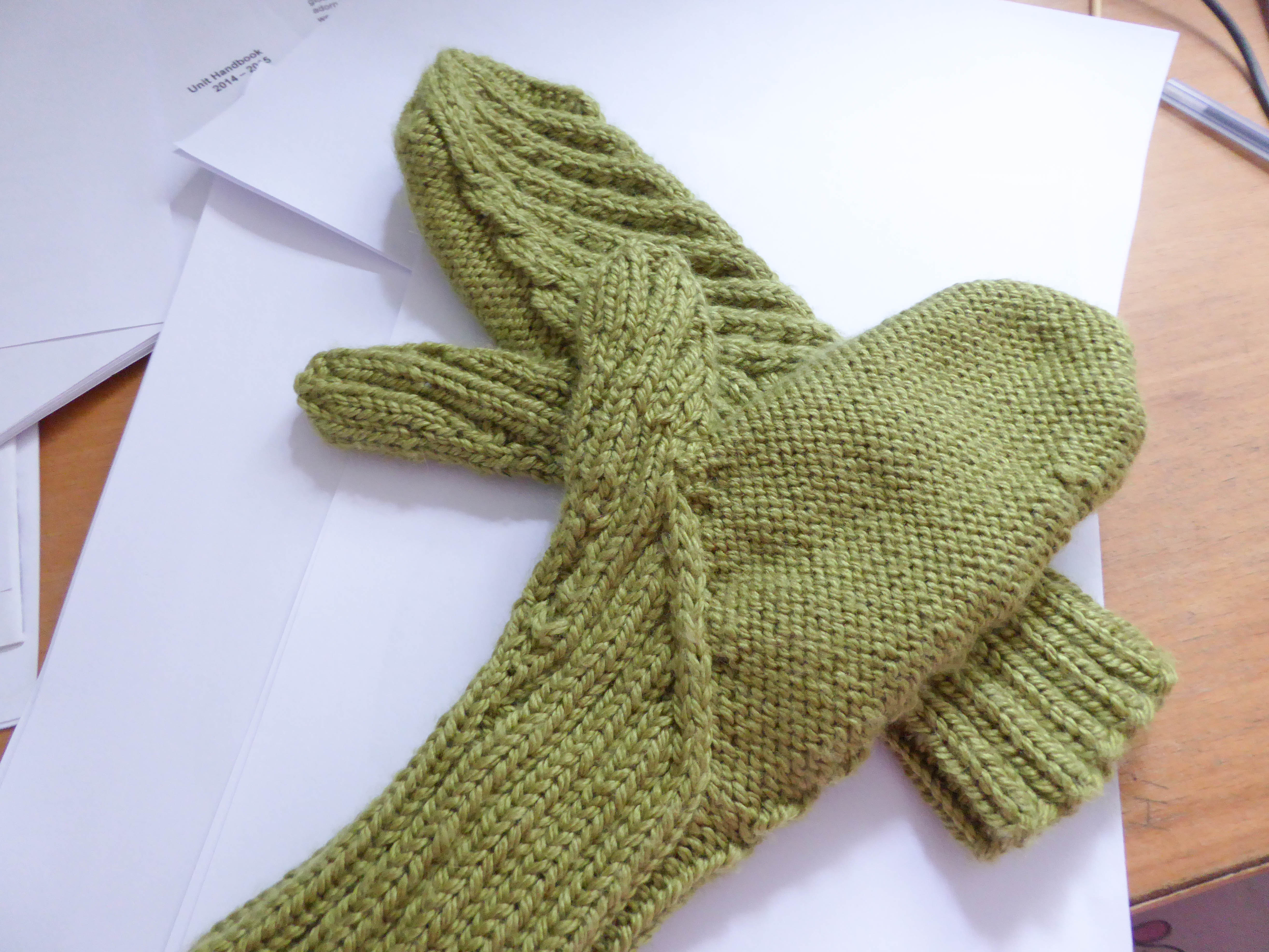 At last some nice warm mittens all ready for winter. We had a bit of a gale the other day and it got me to thinking that I must really finish these lovely mittens. Since that day I have took them into University and back again every day without a single stitch being knitted. I have good intentions and then other work simply takes over, that and I don’t want to be knitting a complicated cable on the train. But at last they are ready and I do love a bit of cable work to admire.