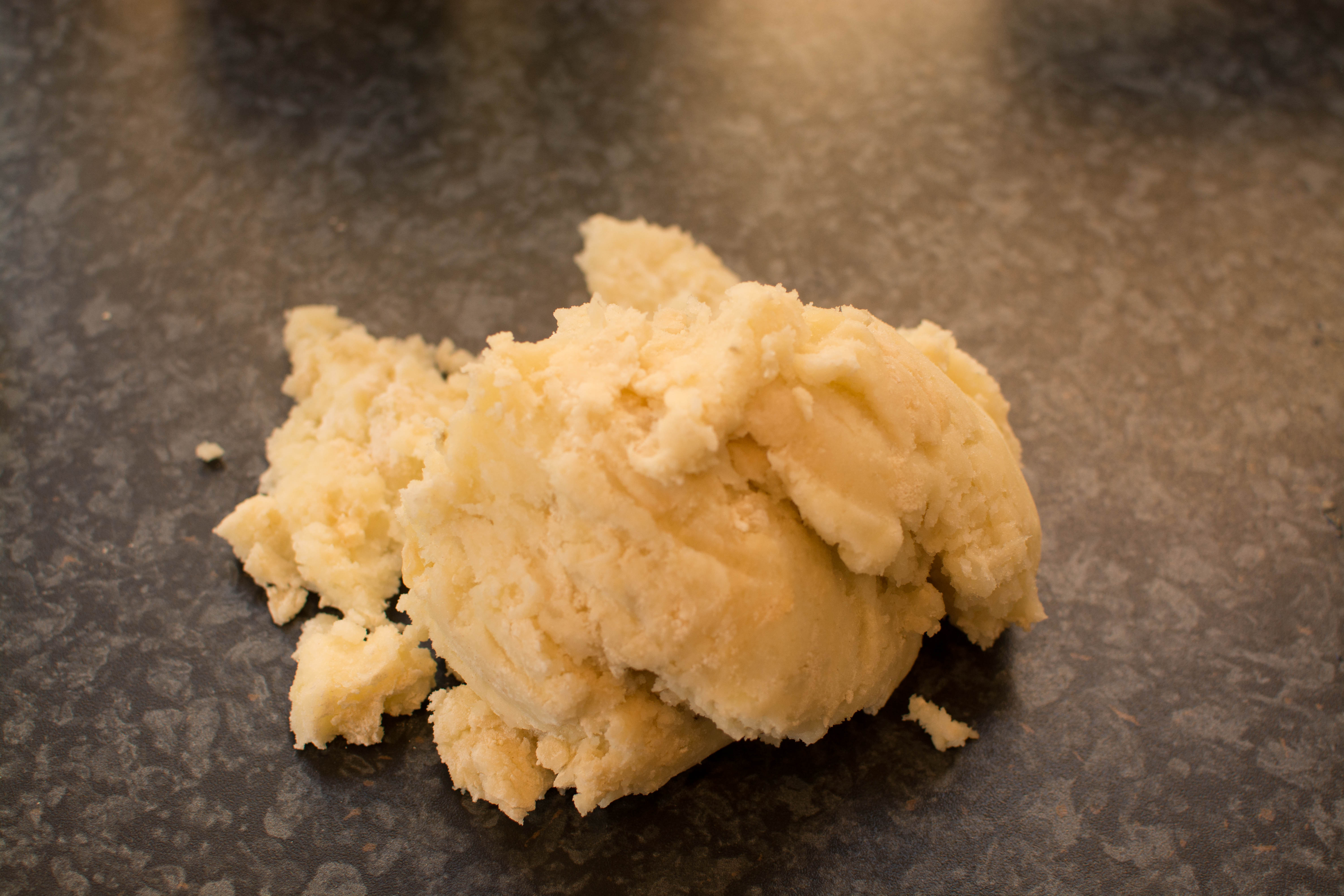I peeled the spuds and weighed them and they came in at 270g and from other recipes on the internet I worked out that a reasonable ratio of flour to the weight of potato would be 60g and 1 small egg.