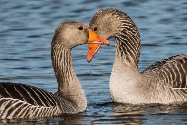 Loved up Greylags, the prettiest of all geese with their orange bills, pink legs and beautiful grey feathering.