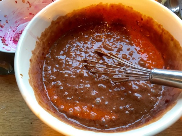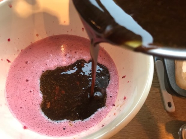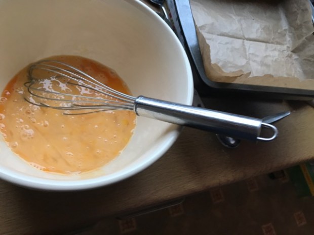 melted butter and sugar and black treacle together and added the juice of a lemon along with 2 extra teaspoons of dried ginger just to pep up the gingery notes a little. Beat the eggs,