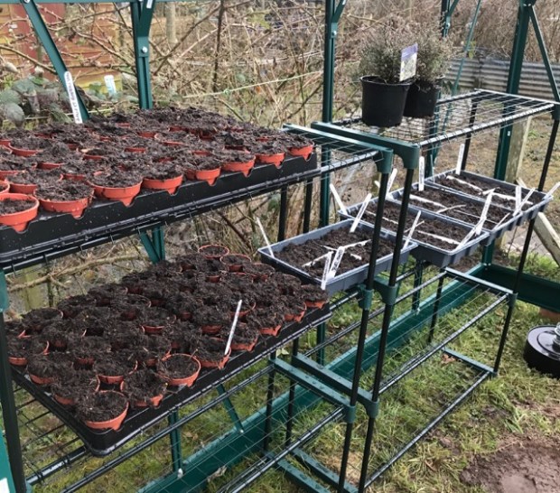 Today I started to plant seeds, while hubby got the paraffin heater going and started to weed out all of the fruit bushes that we have.