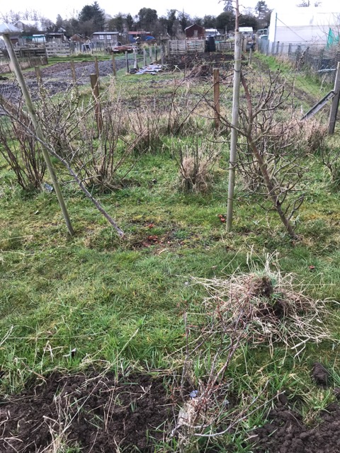 As you can see there is a fair bit of weeding to do, but apart from that the plot is in good nick. The soil is a lovely rich dark colour, it has been well looked after in the past. We have two areas ready to go, one perfect for the spuds which are now chitting on the kitchen window sill.