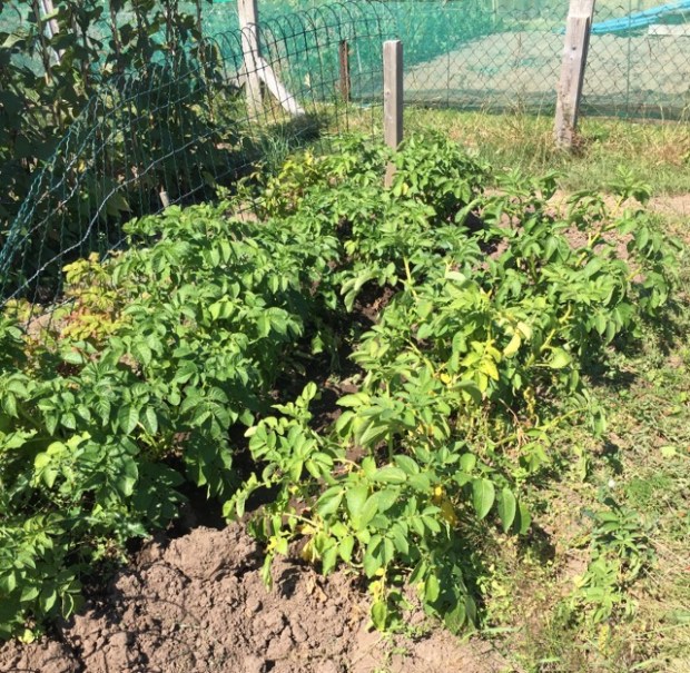 Our new potatoes with a couple of plants that are ready, with the Charlottes having over taken our Jersey Royals, or should I say International Kidney as they should be known in this country.