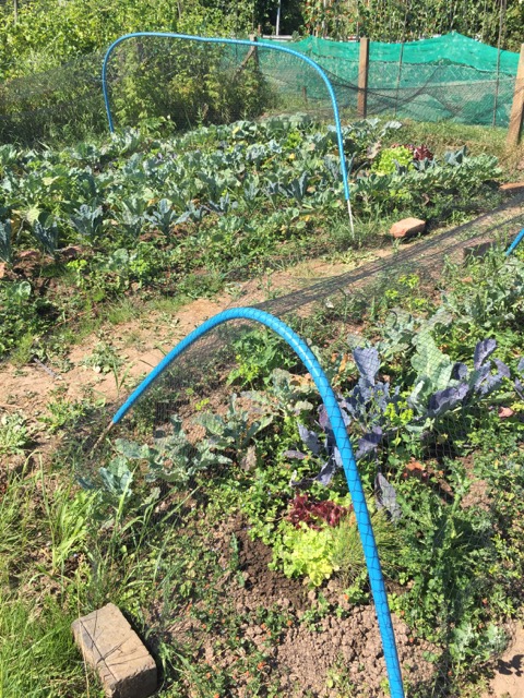 The brassicas, lots of variety here, with lettuces, brussels, various cabbages, spring, summer and winter, cauliflower, broccoli and black kale to name but a few.