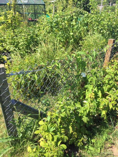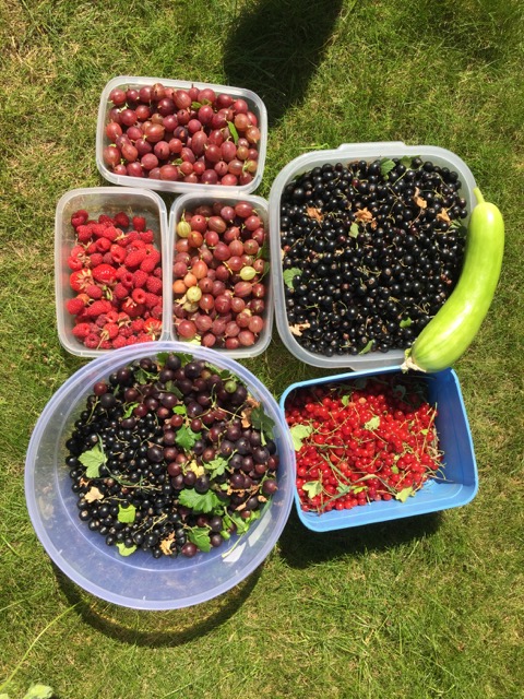 The fruit patch. Even with all the grass through it, its done very well for us this year. We were very lucky to take over mature bushes from the previous tenant.