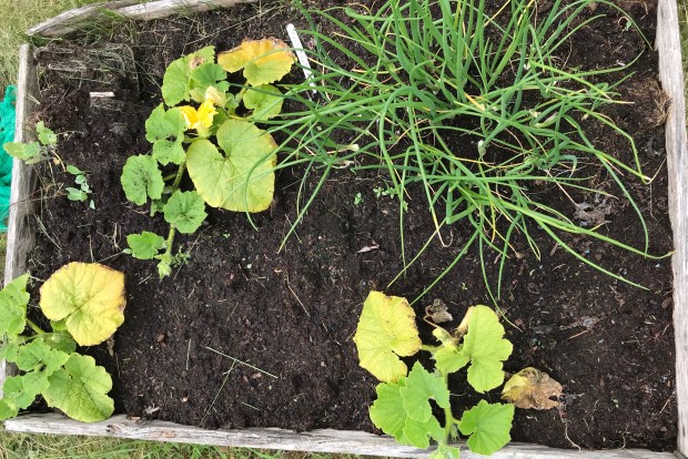 The Crown Prince pumpkins are telling me they would rather it was a little warmer, but they should do fine once it warms up and nestled in is some spring onions for salads.