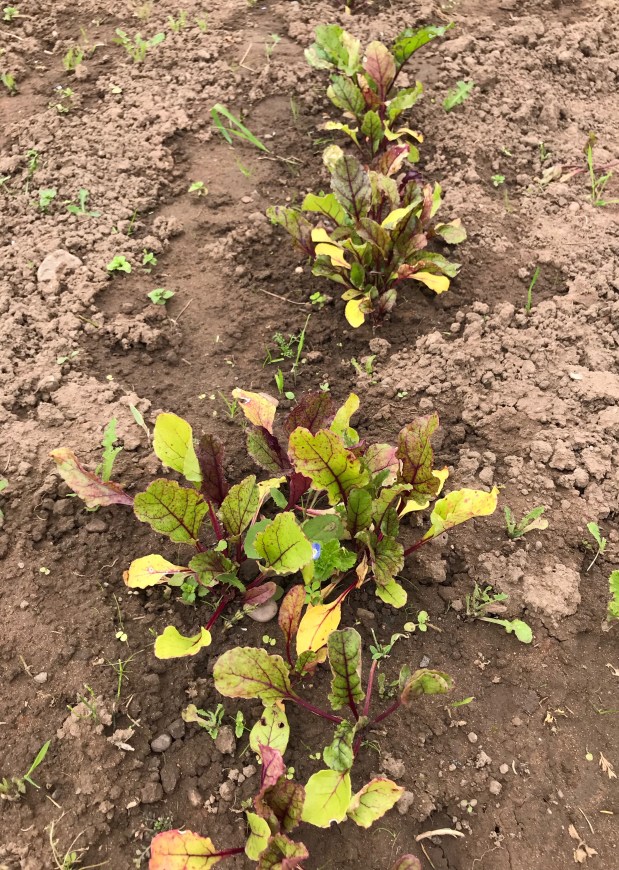 The patchy beetroot, such is the trouble that happens when one is battling against the cold and racing for an early crop, but there are a couple of rows like this, so its not all lost and there will be some more for autumn.