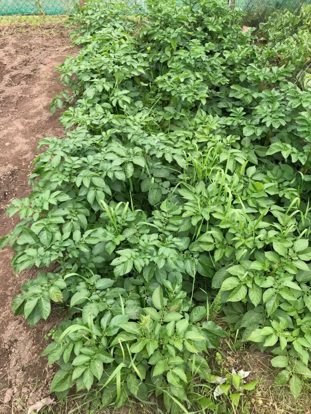 Spuds are doing well. International Kidney, aka Jersey Royals to you and me, along with some Charlottes which are 2nd earlies. I don’t grow main crop because they take too much space up and I would rather grow more expensive items and buy a sack of spuds from a local farm. But the sweetness of a new potato straight from the ground is one of life’s simple pleasures.