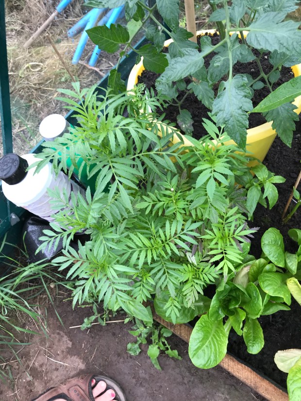 Starting with marigolds, not for us, but for the tomatoes to help keep the whitefly at bay. It seems to work because we never have whitefly.