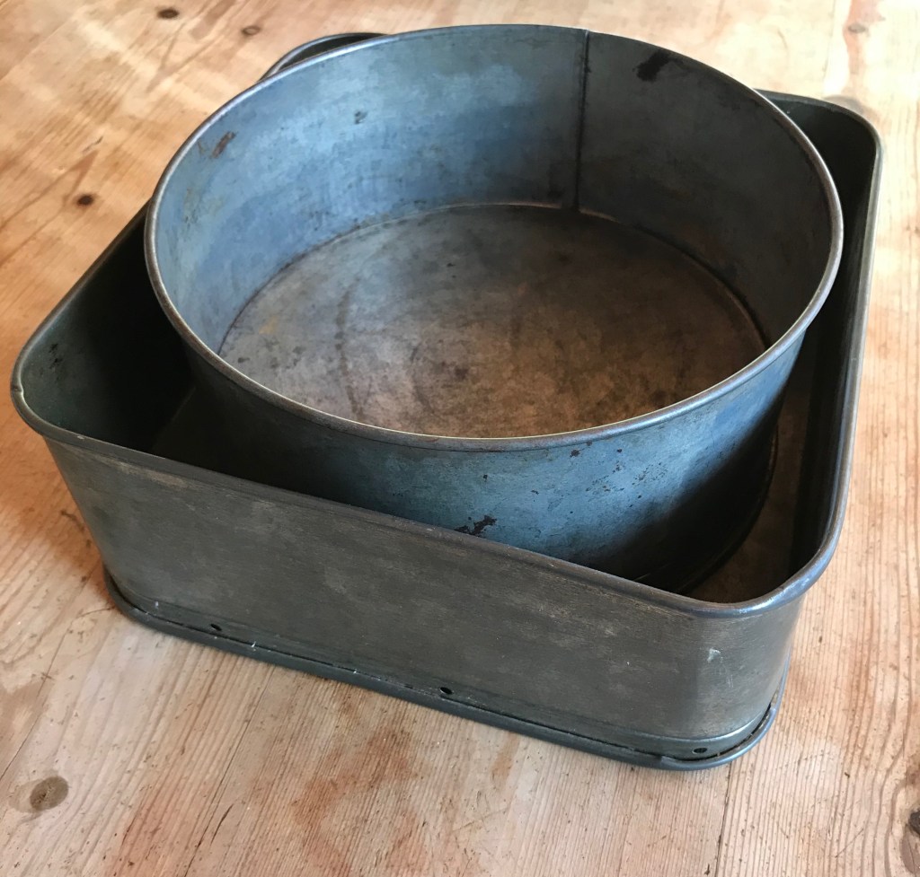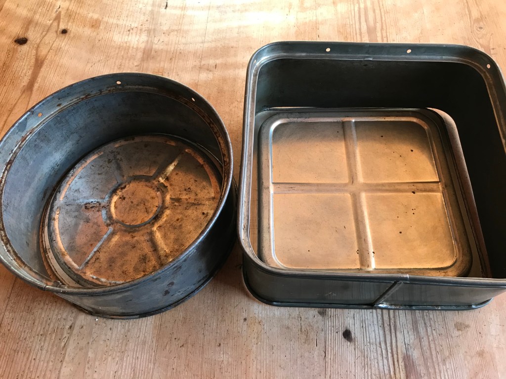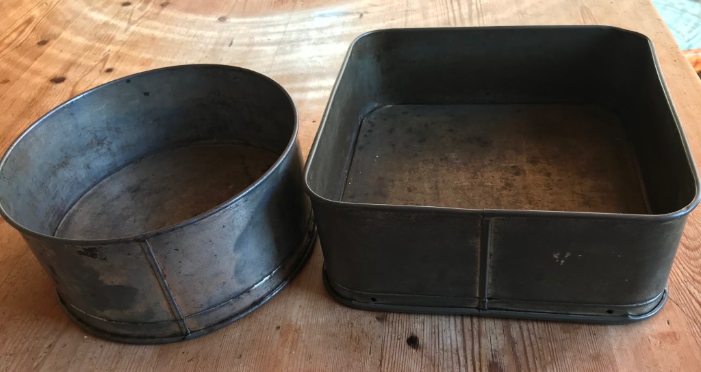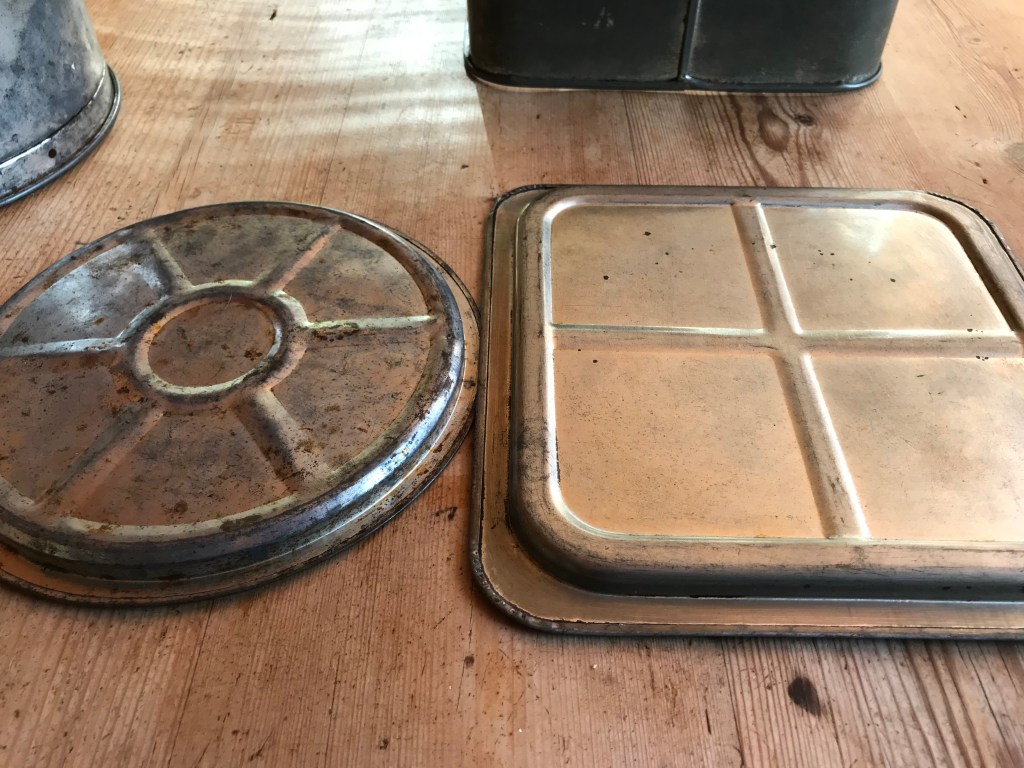 There are no identifying marks on the tins but when one turns them over I am pretty sure that are made by the same manufacturer. They seem to feel the same, have the same welding and air holes etc. Both tins must be over sixty years old, hubby’s Mums might be getting on for eighty!