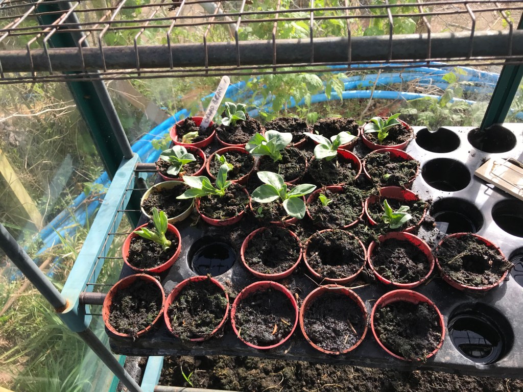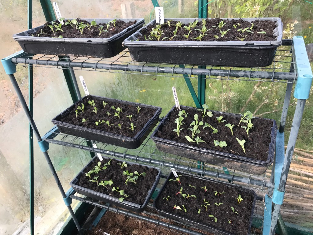 Broad beans. Note the empty pots. I inadvertently left the tray on the lowest rung in the greenhouse, basically meaning it was on the ground. I had already mentioned to hubby that I needed to move it so the mice didn’t get to it, but completely forgot. The next morning low and behold there were big holes where big broad bean seeds used to be. So the mousetraps were immediately set up and baited with peanut butter and sure enough, one very fat mouse has been caught. No others so far, so it looks like he was a lone interloper and our beans remain safe, I have since reseeded the gaps, and we hope for a late crop this year. I am sorry if that all sounds rather brutal, but mice can be a real problem at this time of the year in the greenhouse and its best not to have too much sentimentality about it, just get on with the job.