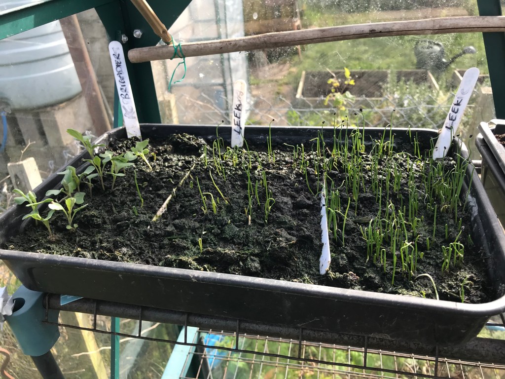 Leeks are coming along. Two different varieties, one much better germination than the other I notice, I will have to make a note of that and decide depending on the crop which to order the next year. I normally grow Musselburgh, but decided to try a new one this year as well, I’ll let you know what happens.