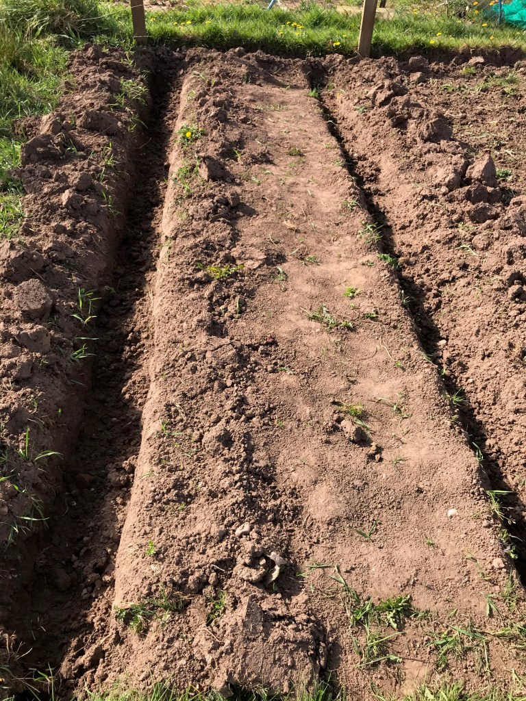 So onto the plot, well, as you know rain stopped play in the Autumn so we had some work to do to prepare the ground and we started to dig, but were loath to get the greenhouse up and running until we knew what the government was going to do. Seeds aren’t cheap and to have many pounds worth of seeds dying through not being able to water them would have been just a step too far. So we waited. And while we waited we put the International Kidney, also known as Jersey Royals to bed the day before we knew the announcement would come as to which way it was going to go.