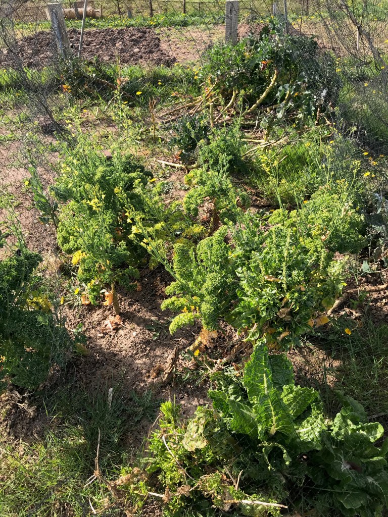 The kale is bolting like mad, but there are still a few meals of tender leaves left on it, so we will see how long it will last. Purple sprouting at the back, we should get another flush from that.