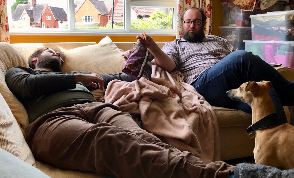 The boys had sprawled and were eating junk food. Could I hear the sound of Christmas carols in the background, I think I could. There was even the smell of slow roasting meat coming from the kitchen that I’d popped into the oven a couple of hours previously.