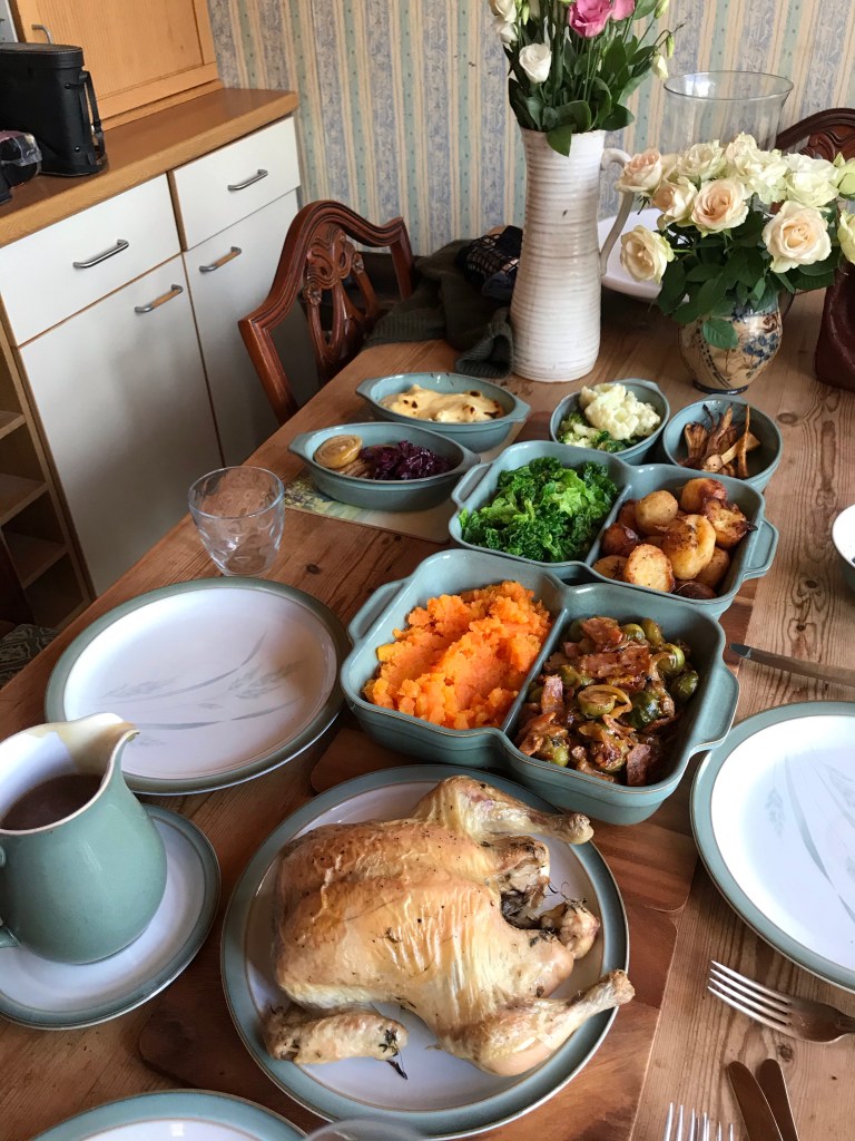 The day then started gently, Son no.1 arrived (don’t worry he had still been isolating) and hubby had lit a fire as the weather has become cold and damp, and a little fire in the grate adds a warmth and cheerfulness to everybody. Son no.2 found a Christmas candle with a contraption that spins when the candle is lit and all of a sudden I could smell pine leaves and was looking around for the Christmas tree, such was the ambience of our mood.