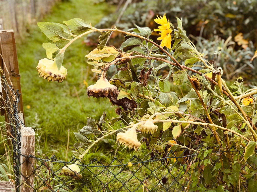 Planted and nurtured for the small birds to enjoy throughout the winter. A couple of heads have been taken to my Dad’s and he has placed them so that he may enjoy the birds finding the seeds during the winter from the comfort of his armchair in the living room. I always feel a little meloncholy as the summer growing season changes to autumn and then winter. I think it is the sadness of seeing all the vibrant verdant growth shrivelling up and turning brown. But within that I am pleased that the sparrows will find these seeds and they will nourish them through the short dark days of winter. Or the mice will find them and then terrorise my greenhouse where I hold no such compassions, it then becomes me verses the mice. Whatever way, it is natures way and for that I love this pic. Taken with an old iPhone on portrait mode, so a shallow depth of field, slightly spruced up in photos.