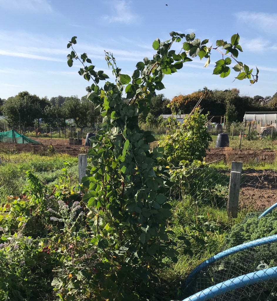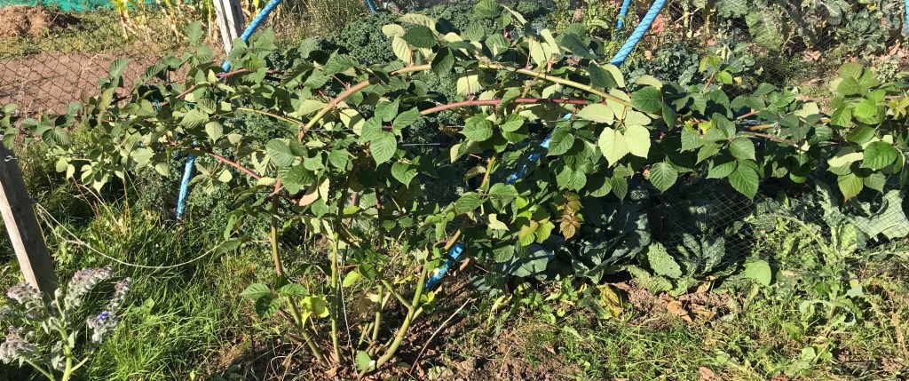The blackberries have been throwing very vigorous new canes out all summer. I’ve been carefully stepping over them or brushing them to one side as I’ve gone around the plot.