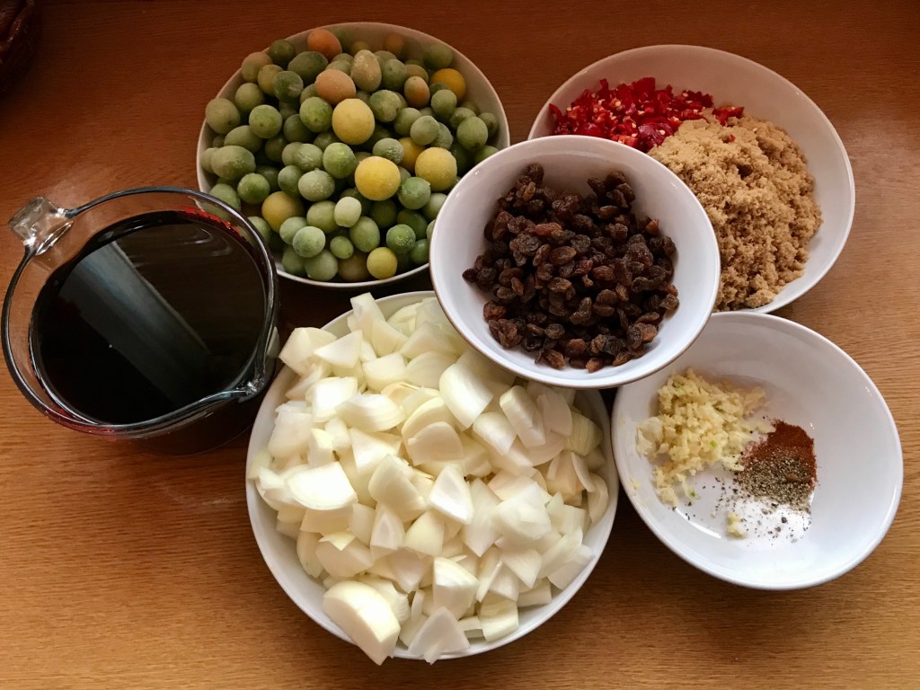 I am nearing the end of my chutney making mainly because I am running out of jars and available space in the pickles and chutney cupboard. Although within that premise I always seem to find jars and space and so have taken to keeping industrial sized quantities of dried English mustard, vinegar and garlic as I’ve found it less onerous to knock up a quick sweet piccalilli, which we enjoy, compared to the long slow reduction of a chutney.
