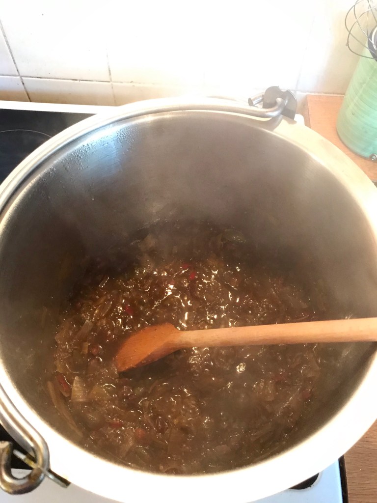 The start of my spicy green tomato chutney. I do love a spicy tomato chutney, it is one of my favourites.