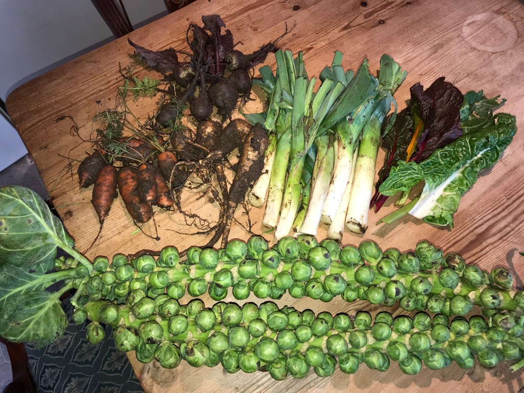The allotment is giving us brussel sprouts, parsnips, purple sprouting, kale and rainbow chard along with the odd cabbage. At least we are getting all of our vitamins.