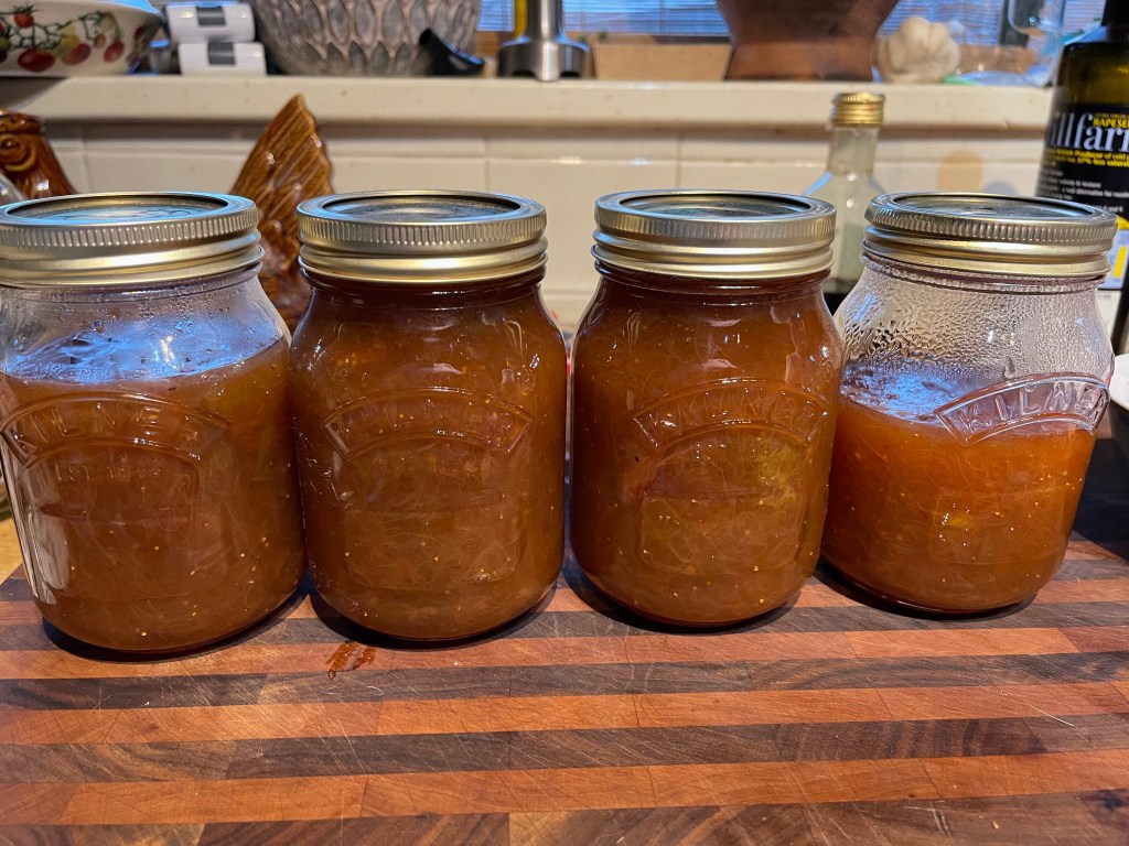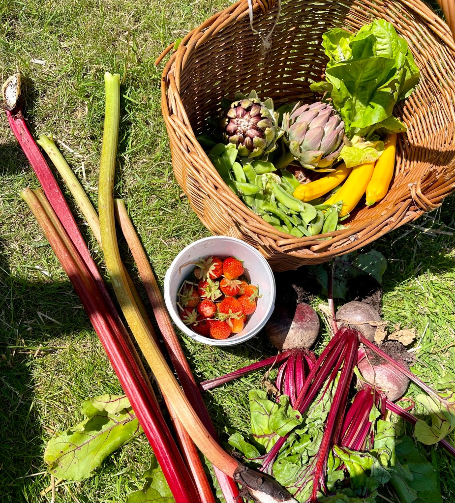 The courgettes are now starting to grow, I will soon be in the middle of preparing for the freezer and making delicious courgette chutneys again. We have had a very generous amount of mange tout, I am hoping to pick some peas in the next day or so, we have had pounds of strawberries and many, many globe artichokes. We picked the rhubarb this year for the first time and I have made pots and pots of rhubarb, strawberry and orange jam, which is absolutely delicious.