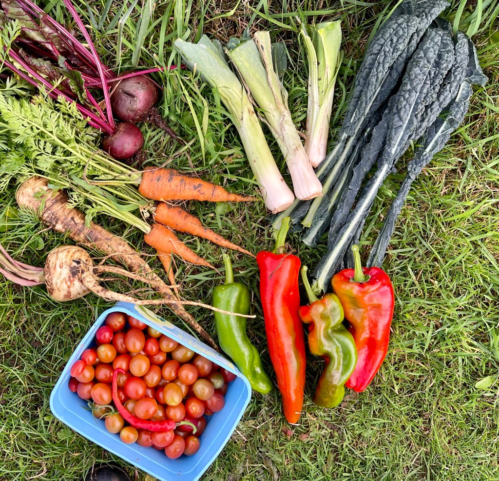 The plot, very productive with a good range of both late autumn and the start of winter produce, seems to be drowning. The warm weather of which we are all grateful brings swathes of heavy rain filled clouds which then prevents one from continuing the tidying up process for winter. Off course this means that I have plenty to eat, of which I then don’t. It is a complicated process to cook and eat for one when deep in grief, especially when much of our life together has been taken up with cooking and then learning to grow fruits and vegetables. Hubby and I bonded over our love in the late 80’s of Keith Floyd and Ken Hom and spent many a happy Friday evening/Saturday cooking meals we had seen that week on the latest chef TV series and then showing off our new found skills to happy to sample and very eager guinea pigs. This was our happy language, until all of the problems of eating that oral cancer throws at you, my own needs put on the back burner having very much concentrated on hubby and Dad. Now it is very much an emotional process, to enter the kitchen and look at the lovely ingredients to decide to then cook, with love, for just me. And dear reader, often I have just grabbed a packet of crisps and walked back into the living room, having very firmly closed the fridge door, and that has happened more days than I care to mention.